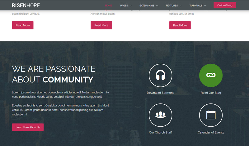 This template contains three custom positions. custom_1 contains the Online Giving button found in the header, you can publish any content you wish to this area but due to its size it should remain limited. custom_2 contains the S5 Image and Content Fader module. Whenever this module is published and modules are published to the top_row1 area, the top_row1 area will overlap the custom_2 position as shown on the homepage. custom_3 is found directly under the the top_row1 area and it contains the S5 Tab Show module.