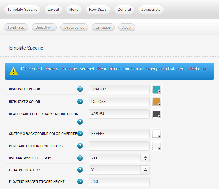 Every template built on Vertex also comes with its own unique template specific options applicable to that particular template such as highlight colors, social icons, and much more. These features are in addition to the standard functions of Vertex, and are still controlled through the very user friendly interface of Vertex. This page will document the features specific to this template.